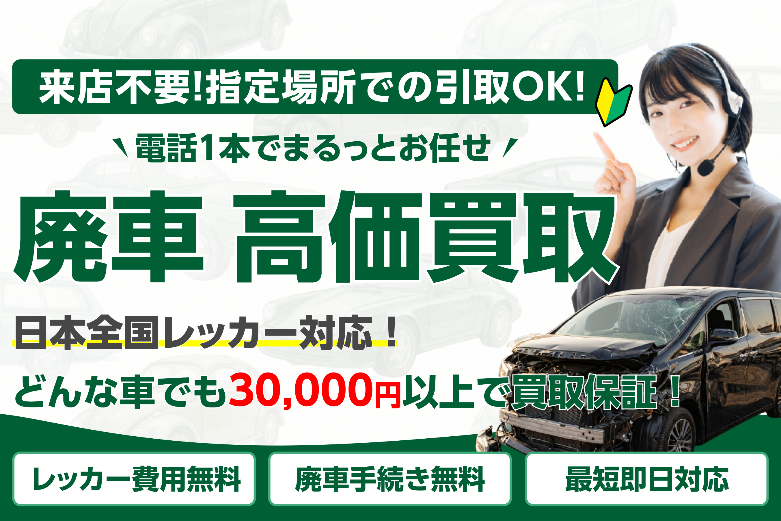 大丈夫です!車検切れ、長期放置、事故車、故障車、どんな状態でも買取可能です。